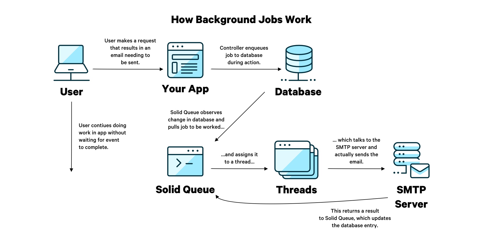 request. With Solid Queue in production, emails will be sent in the background,